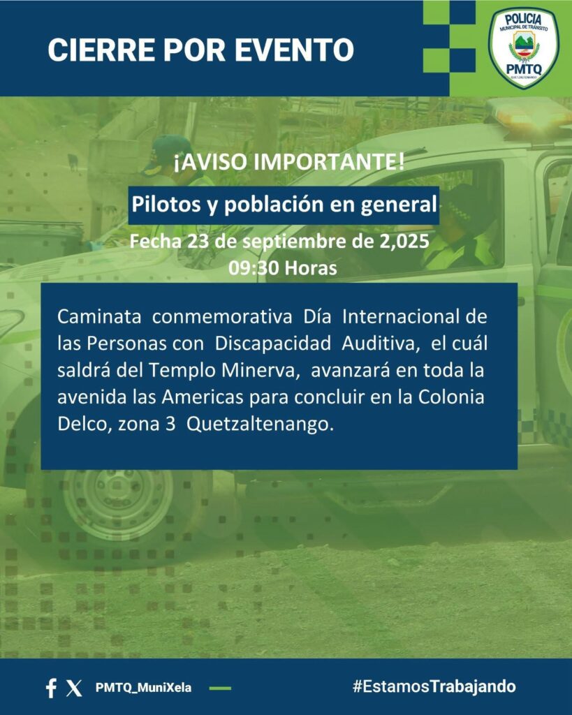 Este lunes 23 de septiembre se desarrollará una caminata conmemorativa en el marco del Día Internacional de las Personas con Discapacidad Auditiva en la ciudad de Quetzaltenango.