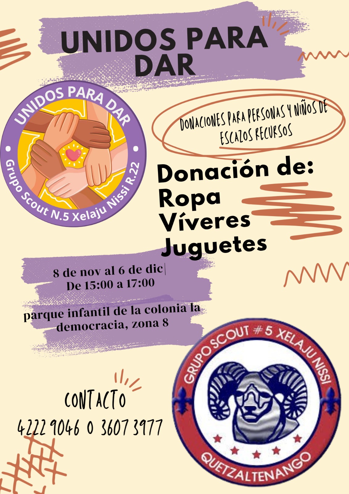Toda contribución, por pequeña que sea, representa un gesto de amor y compromiso hacia la comunidad. Si desean colaborar o necesitan más información, puede comunicarse a los números telefónicos 42229046 y 36073977.