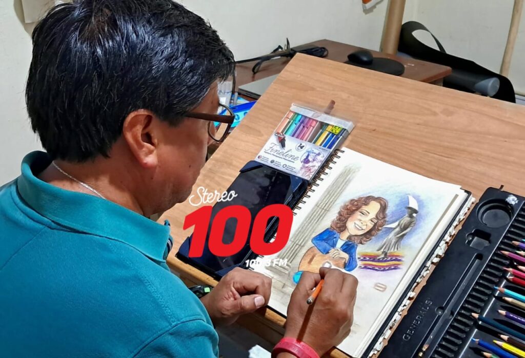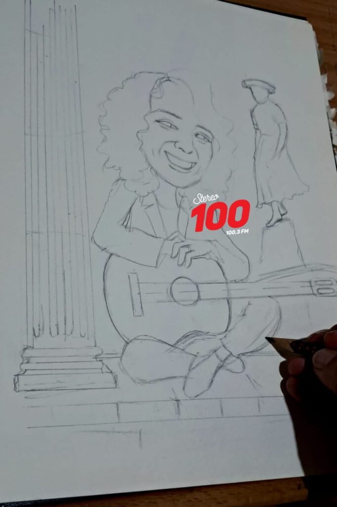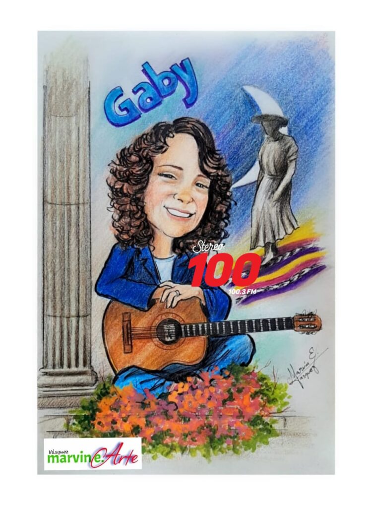 El artista quetzalteco, Marvin Vásquez, elabora una caricatura en homenaje a la artista guatemalteca, Gaby Moreno, reconocida a nivel nacional e internacional.