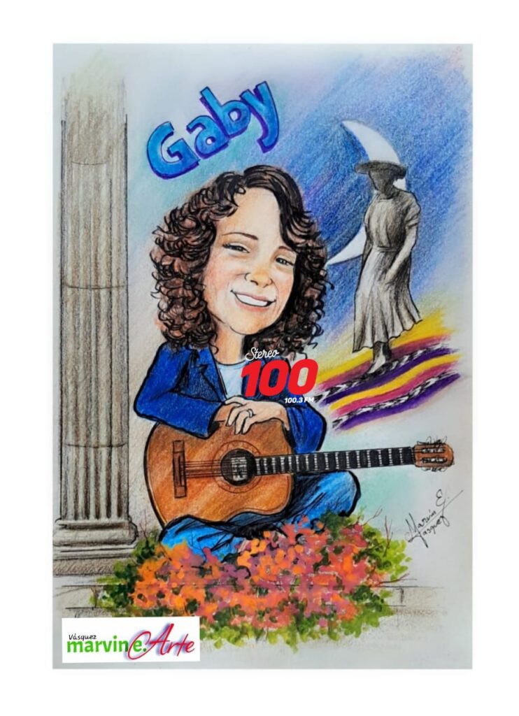 El artista quetzalteco, Marvin Vásquez, elaboró una caricatura en homenaje a la cantautora guatemalteca, Gaby Moreno, quien es reconocida a nivel nacional e internacional.