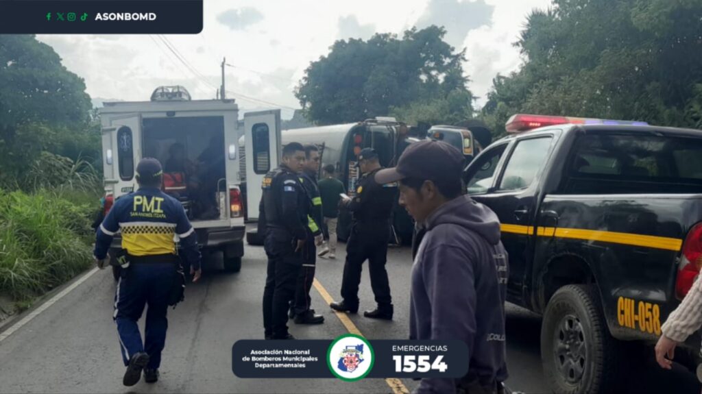 En el ingreso a San Andrés Itzapa, Chimaltenango, bus volcó sobre la cinta asfáltica de la ruta Interamericana CA-1 Occidente en el sector conocido como «El Chalet» a pocos kilómetros de llegar a su destino.