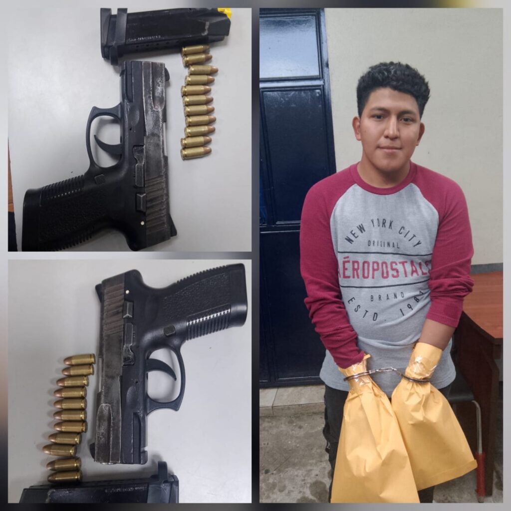 Durante la aprehensión, la PNC le decomisó una pistola marca Tisas Turkiye, junto a su respectivo cargador.