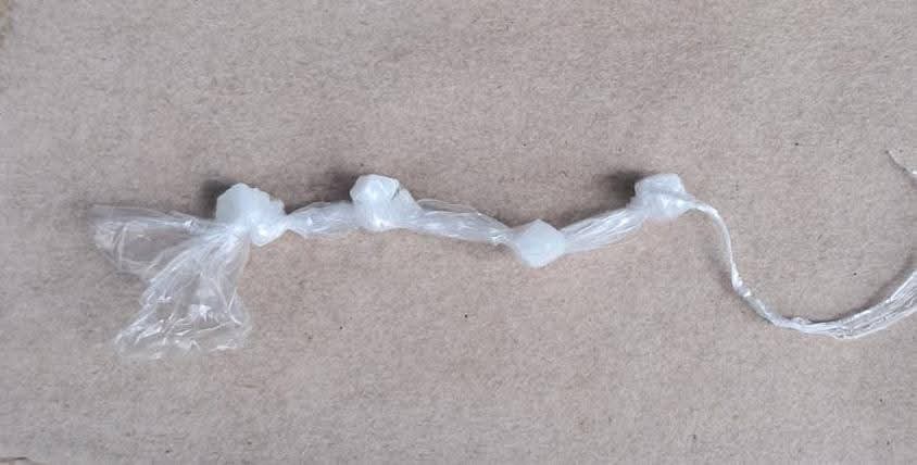 Durante la inspección, las autoridades incautaron una bolsa de nylon con nudos, que en su interior contenía cuatro piedras blanquecinas de la droga denominada “crack”.