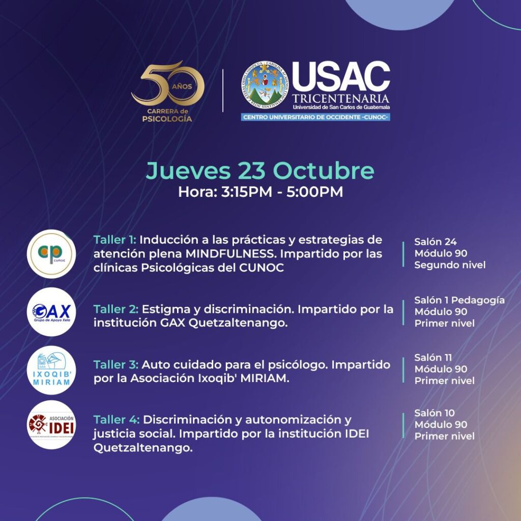 Este jueves, en el Centro Universitario de Occidente (Cunoc) de Quetzaltenango de conmemoran los 50 años de la fundación de la carrera de Psicología.