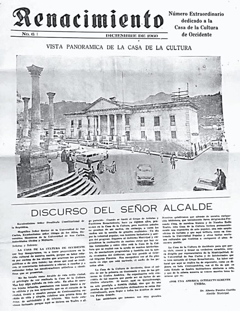 La Casa de la Cultura de Occidente en Quetzaltenango, Guatemala, se inauguró y abrió al público el 15 de diciembre de 1960, cumpliendo una importante labor cultural desde esa fecha en el centro histórico de la ciudad, en un edificio patrimonial que antes funcionó como prisión.