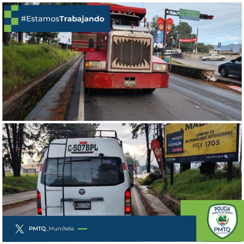 Agentes de la Policía Municipal de Tránsito Quetzaltenango (PMTQ) se encuentran en el lugar realizando coordinaciones necesarias para restablecer la circulación vehicular en el sector.