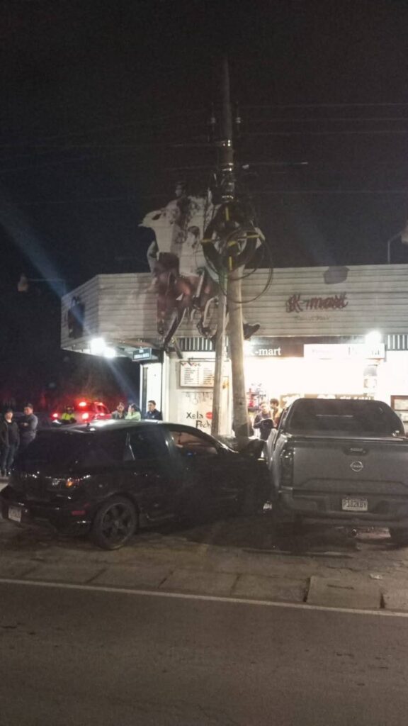 Técnicos de la Empresa Eléctrica Municipal de Quetzaltenango (EEMQ) trabajan en la 23 avenida y 4ª calle de la zona 3, luego de que un incidente de tránsito provocara daños en la infraestructura eléctrica del sector.