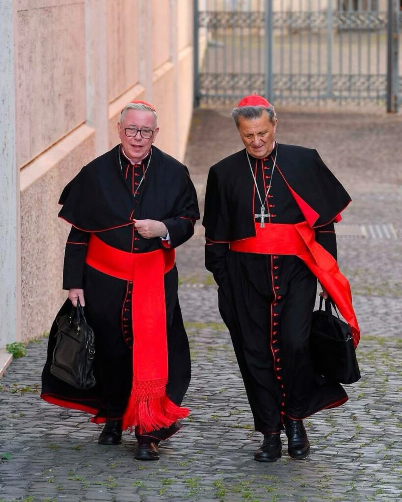 Los Cardenales juraron observar fielmente las normas de la Constitución Apostólica Universi Dominici Gregis respecto a la vacante de la Sede Apostólica y a la elección del Romano Pontífice, luego cantaron el Adsumus. Se leyeron los párrafos 12 y 13 de la Constitución Apostólica y el cardenal Kevin Joseph Farrell leyó a los Purpurados el Testamento de Francisco que se dio a conocer ayer por la tarde.