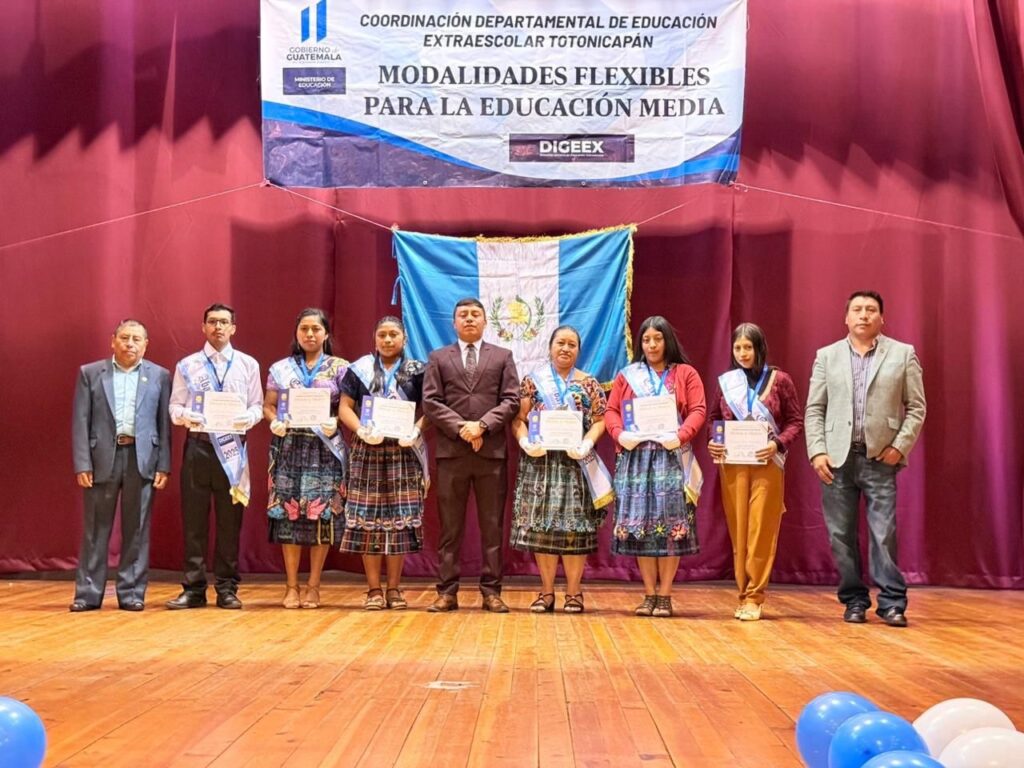 Este martes 26 de agosto condecoraron a estudiantes destacados 2025 del Programa de Modalidades Flexibles de los 8 municipios de Totonicapán, en el nivel de Educación Media de Educación Extraescolar.