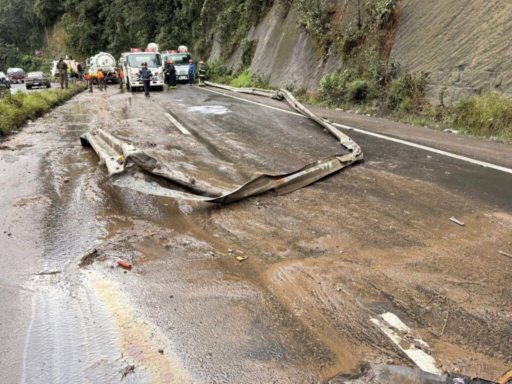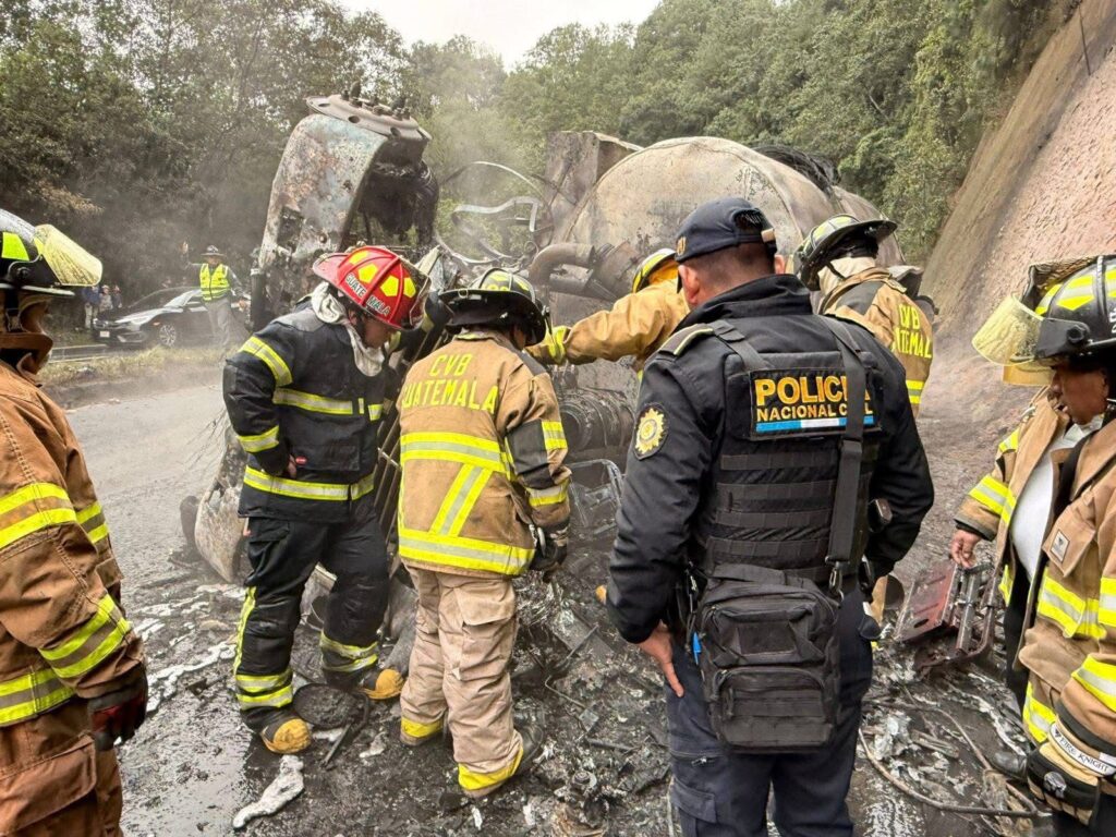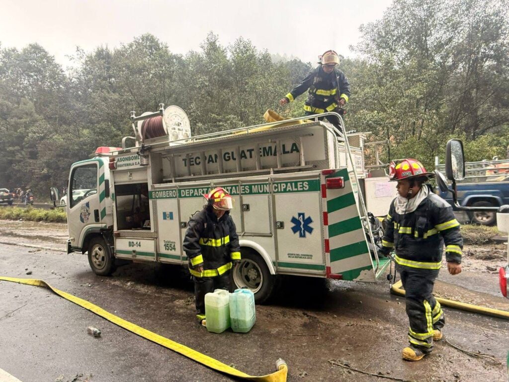 Bomberos Voluntarios y Bomberos Municipales Departamentales mantienen labores de aseguramiento del perímetro y limpieza del área, con apoyo de la Policía Nacional Civil (PNC), Covial y la Conred.