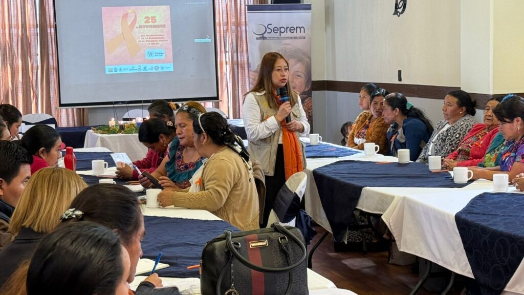 Este lunes, en conmemoración del Día Internacional de la Eliminación de la Violencia contra la Mujer, la Secretaría Presidencial de la Mujer (Seprem) desarrolló un conversatorio dirigido a mujeres lideresas de la región Occidente de Guatemala, con el objetivo de fortalecer conocimientos y dialogar sobre la prevención de la violencia en sus distintas manifestaciones.