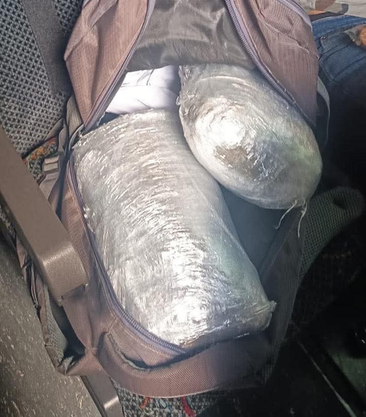 Durante la revisión de un autobús de Transportes del Pacífico, procedente de Tecún Umán, San Marcos, con destino a la ciudad capital, los agentes localizaron en el equipaje de uno de los pasajeros dos paquetes con marihuana, ocultos en un compartimiento del maletín.