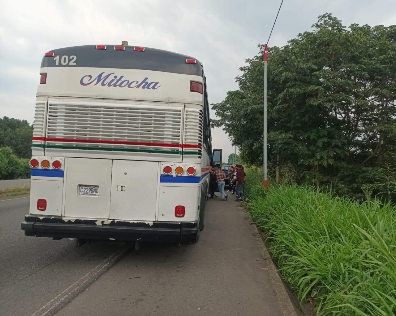 Agentes de la División de Puertos, Aeropuertos y Puestos Fronterizos (Dipafront) detuvieron un autobús de transporte Mitocha en el kilómetro 203, jurisdicción de Colomba Costa Cuca, Quetzaltenango, cuando se dirigía hacia Tecún Umán, San Marcos.