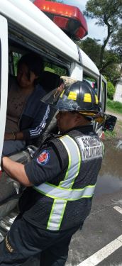 Este jueves, Bomberos Voluntarios de la 42 Compañía de Totonicapán atendieron a dos personas, quienes resultaron heridas en un accidente de tránsito.