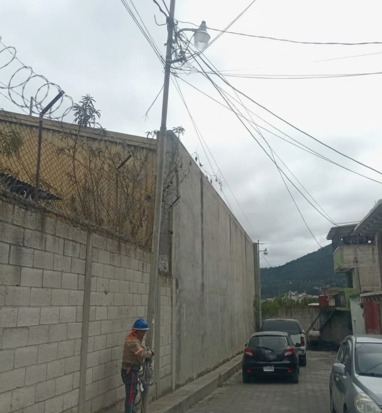 Técnicos del área de Alumbrado Público de la Empresa Eléctrica Municipal de Quetzaltenango (EEMQ) desarrollan trabajos como parte del programa de iluminación urbana en varias zonas de la ciudad, con el objetivo de mejorar las condiciones de visibilidad y seguridad para peatones y conductores.