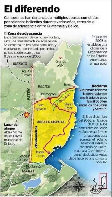 En 2008, Guatemala y Belice firmaron el Acuerdo Especial para llevar el diferendo territorial, insular y marítimo a la Corte Internacional de Justicia (CIJ), compromiso ratificado mediante consultas populares en ambos países años después.