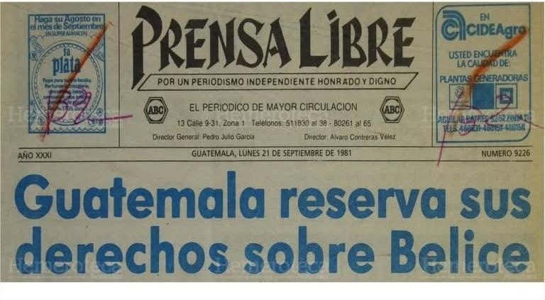 Ese mismo día, el Gobierno guatemalteco emitió un comunicado en el que calificó la independencia de Belice como “una farsa más del colonialismo inglés”. Según las autoridades, la proclamación unilateral no debilitaba los derechos históricos de Guatemala sobre el territorio, amparados en la Constitución.