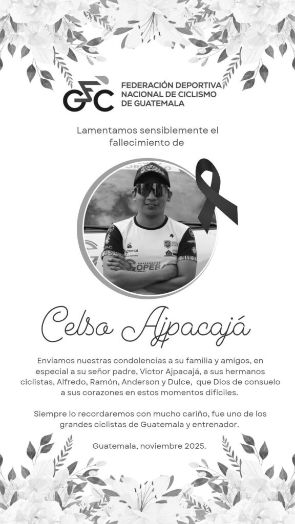 La Federación Guatemalteca de Ciclismo también emitió una esquela oficial expresando sus condolencias a la familia Ajpacajá, resaltando su entrega y compromiso con el deporte.