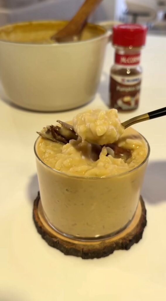 Cuando se absorbe el agua agregar leche de coco, canela, vainilla, puré de calabaza y endulzante.
