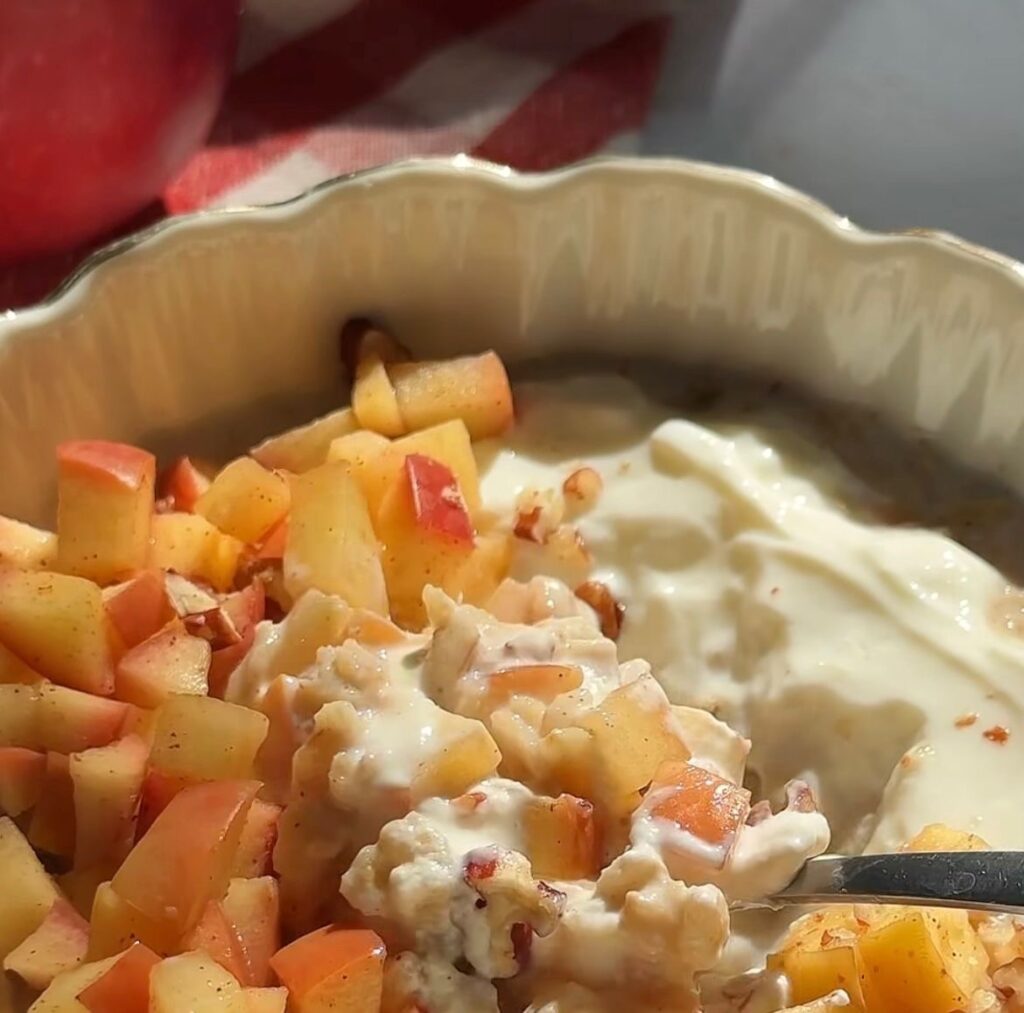 - Sirva en un plato, agregue por encima la manzana que apartó