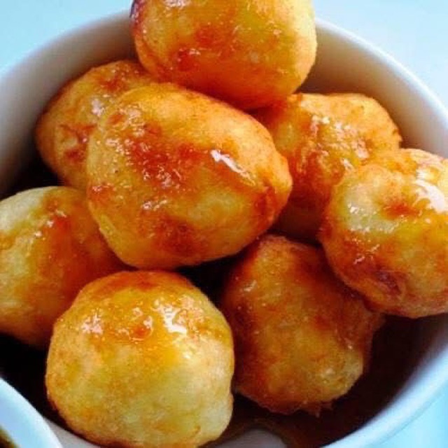 Usando una cucharita, deposite los buñuelos en el aceite caliente, uno por uno. Freír a temperatura media. Sáquelos cuando estén dorados. Escurrir exceso de grasa, en una toalla absorbente de papel.
