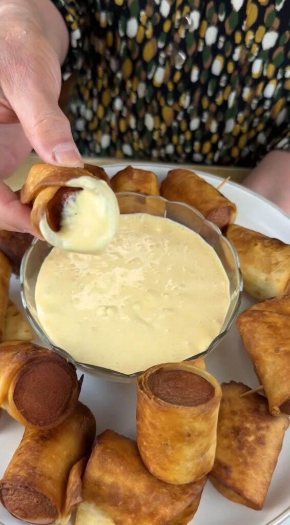 Colocar en un extremo de la tortilla de harina una salchicha y enrollar. Asegurar con palillos y cortar en porciones.