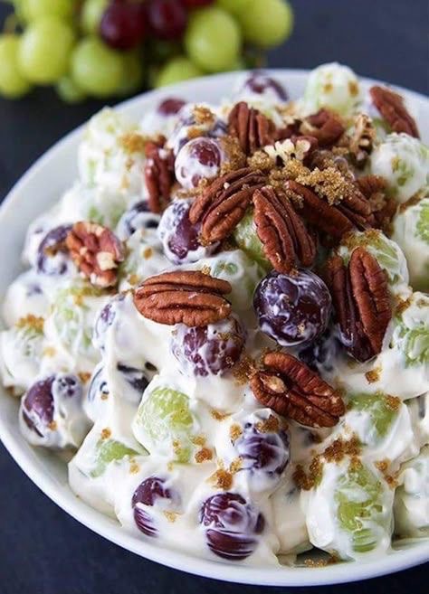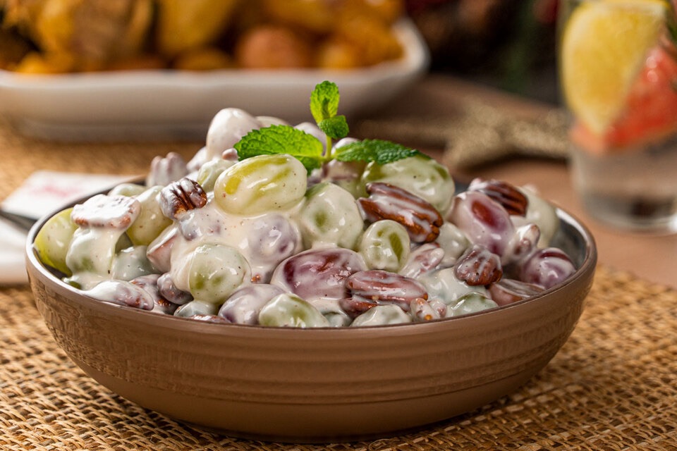 Agregar la salsa a la mezcla de uvas hasta combinar.