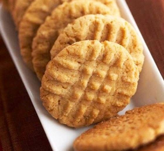 Formar bolitas; colocarlas sobre una bandeja para hornear dejando espacio entre cada una. Usar un tenedor para aplastarlas y dejar un diseño de líneas entrecruzadas.