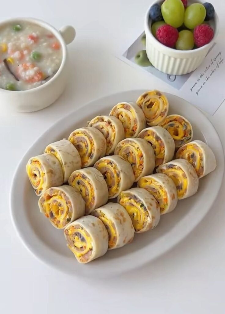 Retirar de la sartén y enrollar bien. Cortar en porciones y servir.