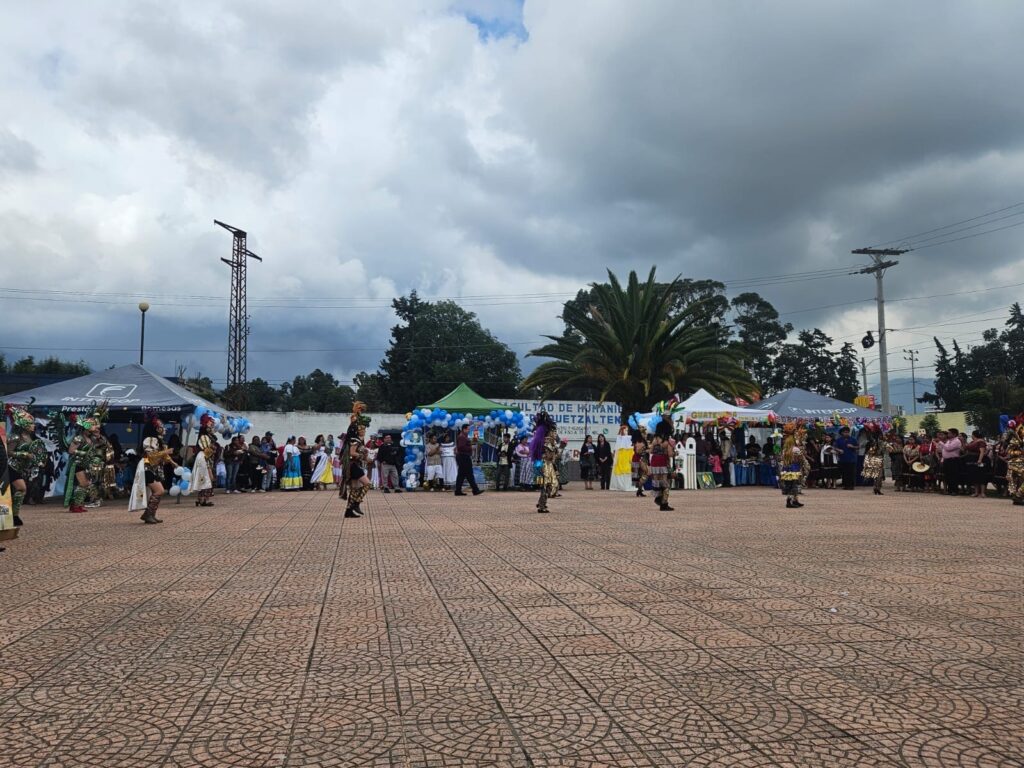 En el parque a Japón, zona 3 de Xela, estudiantes de la universidad de San Carlos realizan la presentación de actividades culturales en conmemoración de los 204 años de independencia de Guatemala.