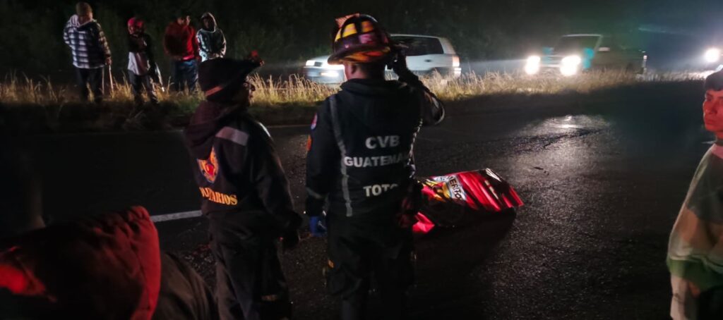 Bomberos Voluntarios de la 42ª Compañía de Totonicapán atendieron un reporte de emergencia en el kilómetro 161 de la Ruta Interamericana, donde fue localizado un hombre sin vida sobre la vía, con lesiones graves en la cabeza.