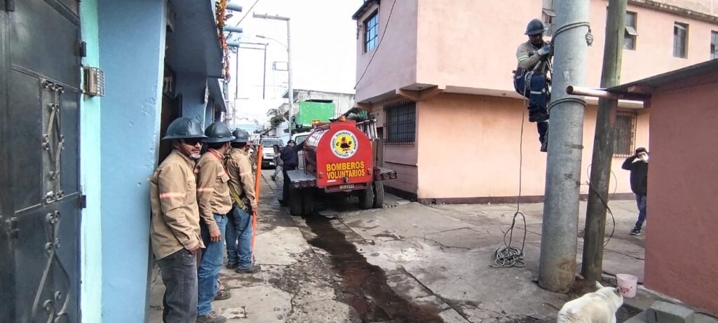 Técnicos de la Empresa Eléctrica Municipal de Quetzaltenango (EEMQ) suspendieron el servicio en un sector de la colonia Minerva como medida preventiva, con el fin de permitir que los cuerpos de emergencia trabajen con mayor seguridad y sin riesgo de accidentes por contacto eléctrico.