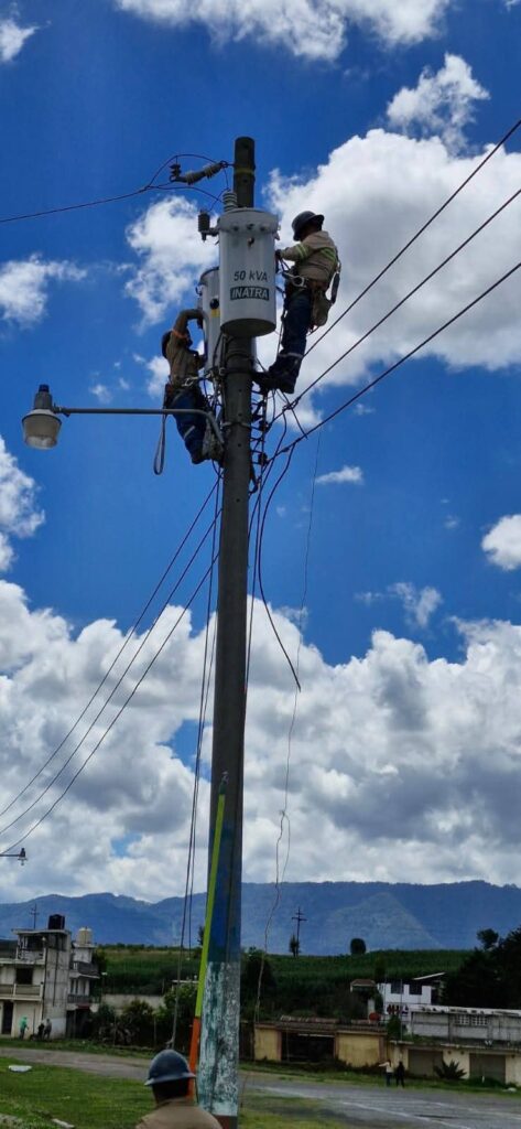 Los trabajos los desarrollan técnicos del Departamento de Mantenimiento y el Departamento de Transportes, estos últimos apoyan con una grúa para la colocación de transformadores.