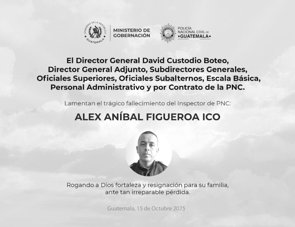 Se confirmó la muerte del inspector de la Policía Nacional Civil (PNC) de Guatemala, Alex Figueroa, tras una balacera registrada en una gasolinera de Ixcán, Quiché.