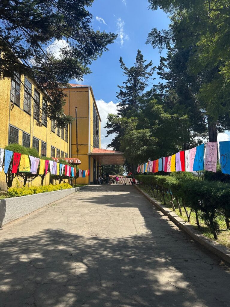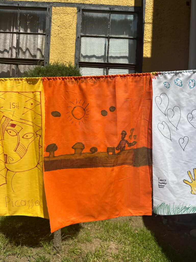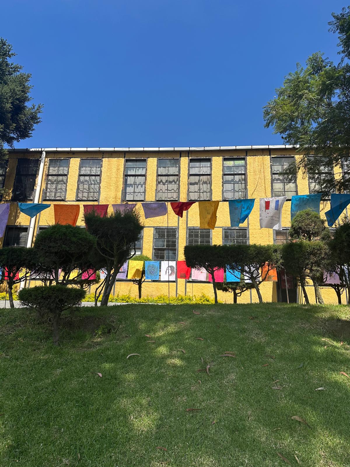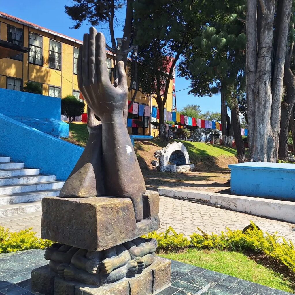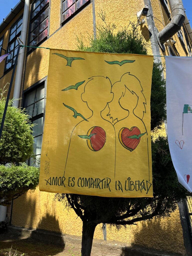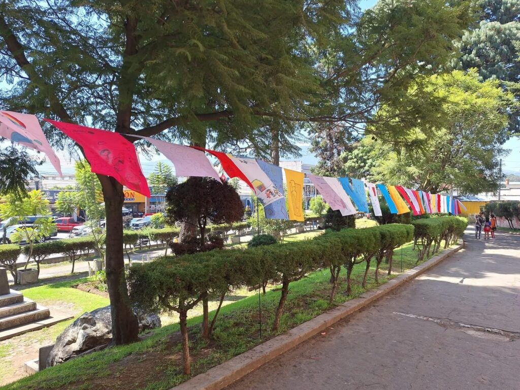 Vecinos y vecinas, luego de una serie de talleres en diversos espacios culturales de Xela, instalan 150 pancartas en el Centro Intercultural y Deportivo de Quetzaltenango (Cideq) como parte de «El parque del amor» del artista peruano, Víctor Delfín.