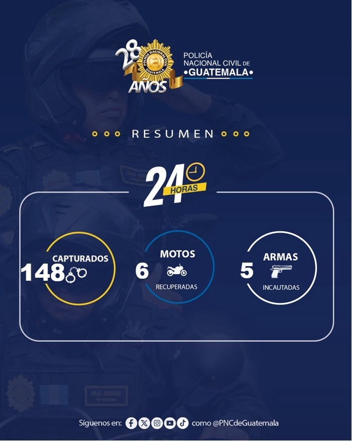 148 capturados, 5 armas incautadas, la recuperación de 6 motocicletas