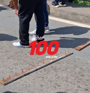 El bloqueo inició desde temprano y los manifestantes, para impedir el paso de vehículos, colocan reglas con clavos.