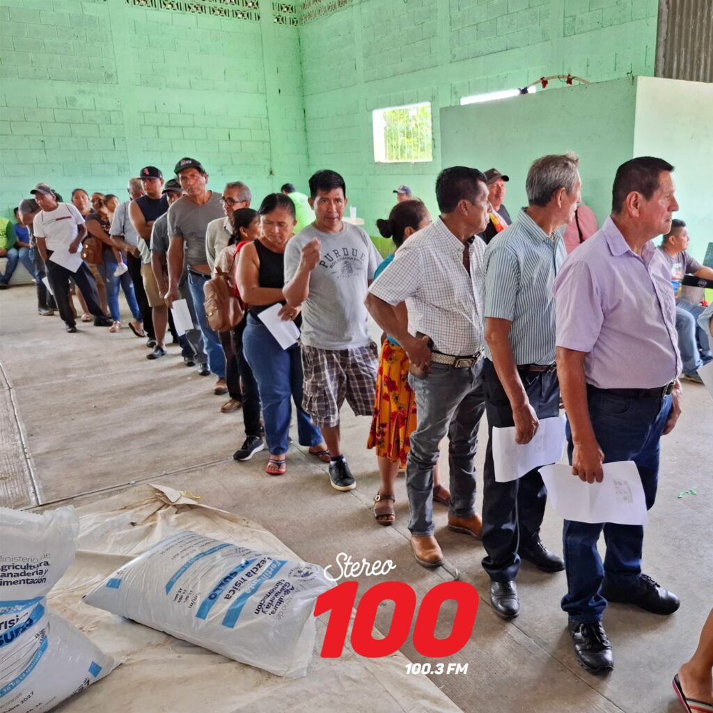 Los agricultores favorecidos son de las comunidades de la parte baja del municipio: Boxomá, Lolita, San Antonio El Mangal, Casa Blanca y Santa Lucía. Les entregan dos quintales a cada agricultor.