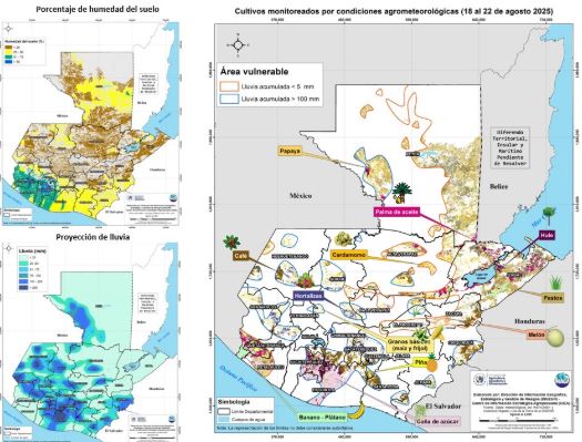 El Ministerio de Agricultura, Ganadería y Alimentación (MAGA) monitorea 247 municipios de los 22 departamentos de Guatemala, debido al informe de condiciones meteorológicas emitido por el Instituto Nacional de Sismología, Vulcanología, Meteorología e Hidrología (Insivumeh) de que existe un déficit de humedad, aunado al pronóstico del 18 al 22 de agosto.