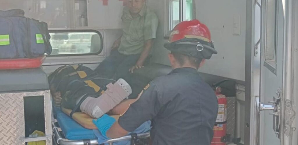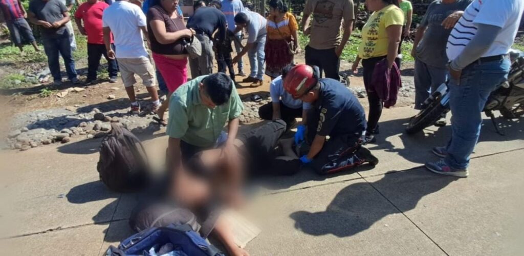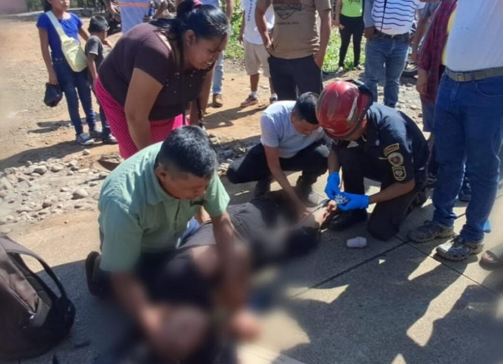 En el lugar brindan atención prehospitalaria a José Eduardo Vásquez Vásquez, de 15 años, originario del caserío San Isidro, aldea San Miguelito, Génova Costa Cuca, quien presenta posible fractura cerrada en la pierna derecha y golpes.