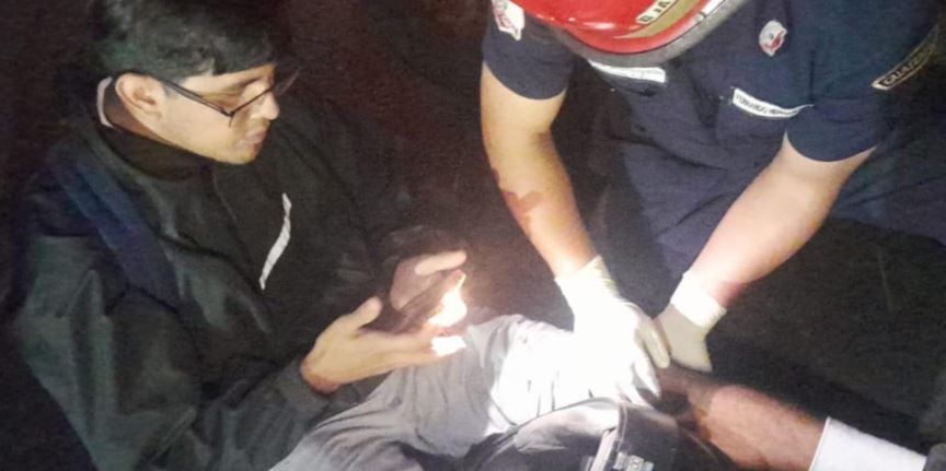 Este viernes, Bomberos Municipales Departamentales del cantón Las Delicias, Colomba Costa Cuca, Quetzaltenango, trasladan al motorista, Antonio José Gramajo, de 29 años, al Instituto Guatemalteco de Seguridad Social (IGSS).