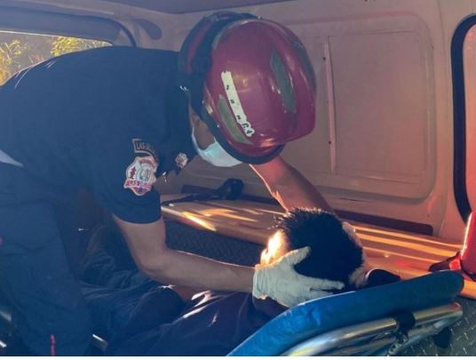 Los socorristas le brindaron atención prehospitalaria a Elmer Iván Vásquez Osorio, de 25 años, quien presenta golpes.