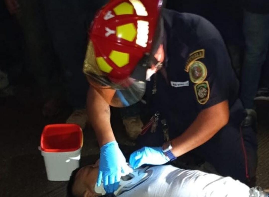 Bomberos Municipales Departamentales le brindaron atención prehospitalaria a Kevin Geovany Chocooj de la Cruz, de 32 años, originario del barrio El Campo Nuevo, zona 2, La Tinta, Alta Verapaz.