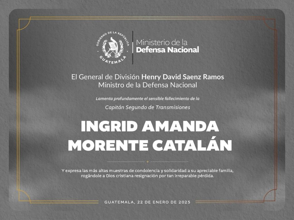 El Ejército de Guatemala y el Ministerio de la Defensa, en redes sociales, publicaron esquelas donde lamentan la muerte de la capitana.