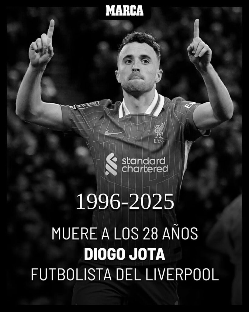 Muere el futbolista del Liverpool, Diogo Jota, en un accidente de tránsito.