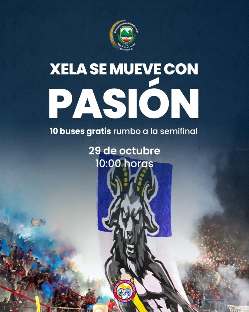 La Municipalidad de Quetzaltenango anunció la habilitación de 10 buses gratuitos para trasladar a los aficionados que deseen asistir al partido de vuelta de la semifinal de la Copa Centroamericana de la Concacaf, donde Xelajú MC enfrentará al Real España de Honduras.