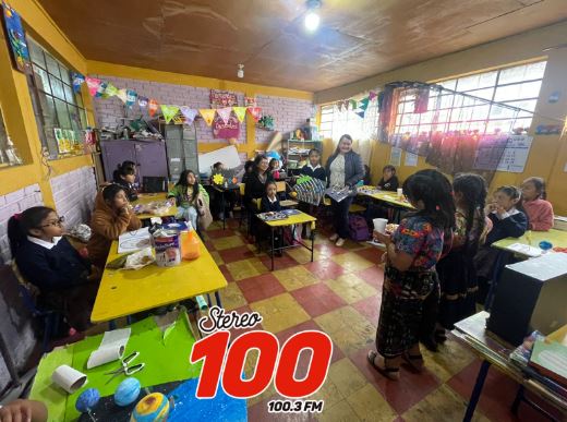 Alumnas de segundo grado de la Escuela Oficial de Niñas Manuel Ortega, en la zona 1 de Quetzaltenango, desarrollan presentación de la cultura, tradición, vestimenta, gastronomía e idioma de cada municipio de Quetzaltenango.