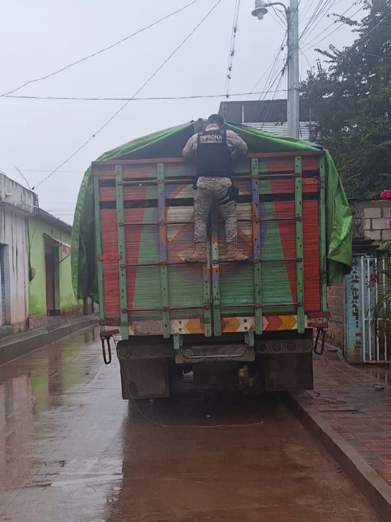 Ellos transportaban 12 metros cúbicos de pino en el camión C-693BDH y no presentaron documentación que respaldara la legalidad del traslado del producto forestal.