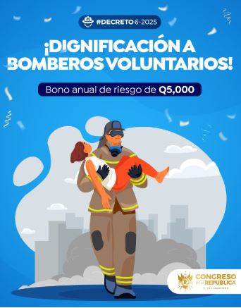 En la siguiente publicación, en el Decreto 6-2025, oficializan la bonificación de Q5 mil anuales a personal permanente del Benemérito Cuerpo Voluntario de Bomberos de Guatemala.