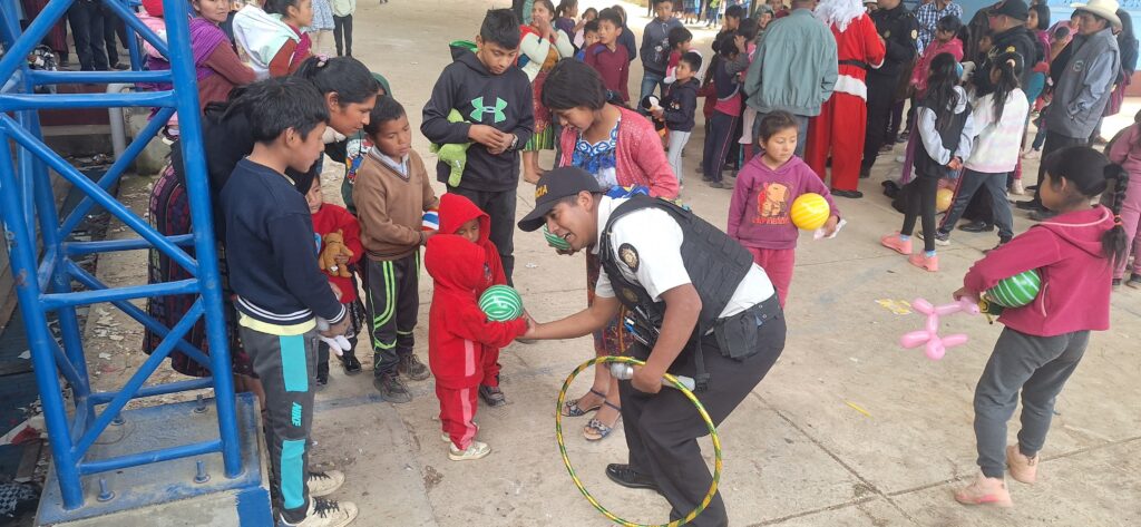Este martes, en la aldea Xux, Cabricán, Quetzaltenango, delegados de Prevención del Delito de la Policía Nacional Civil (PNC), en cumplimiento a la orden de servicio 44-2025, denominada «Un juguete por mi comunidad», desarrollan actividad.